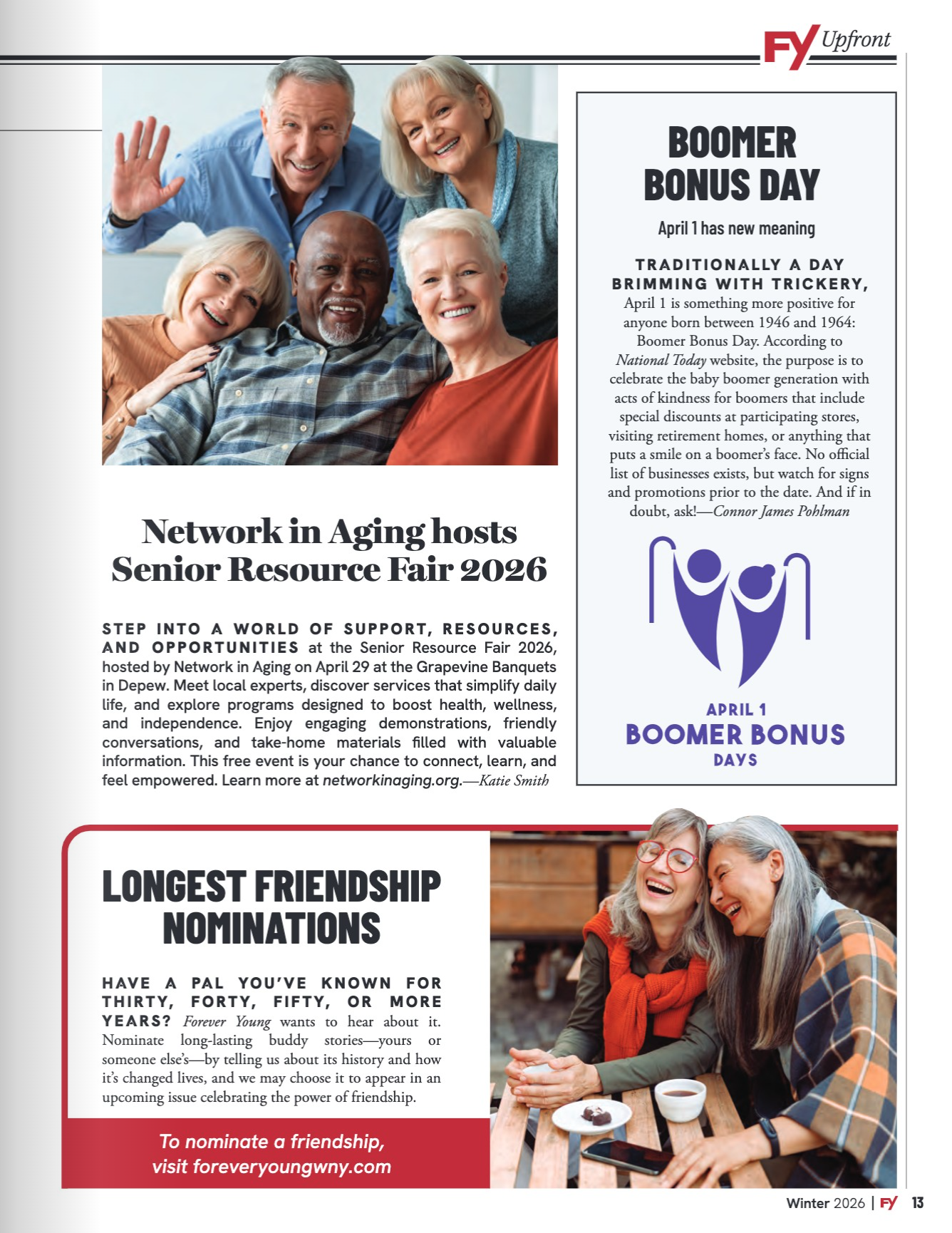 Forever Young-A Buffalo Spree Magazine-Contributorcpohlman882026-03-13T21:00:57+00:00 UB WELCOMES GRAMMY- WINNING DIANA KRALL April 7, jazz icon Diana Krall’s 2026 tour hits University at Buffalo Center for the Arts BOOMER BONUS DAY April 1 has new meaning!